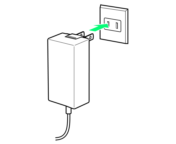 ACアダプタの電源プラグを起こし、コンセントに差し込む