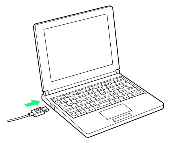 パソコンのUSB端子に、PC接続用USB Type-CケーブルのUSBプラグを差し込む