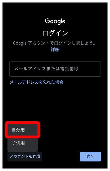 - 子供用のアカウントを作成する場合は、をタップして画面の指示に従って操作してください。