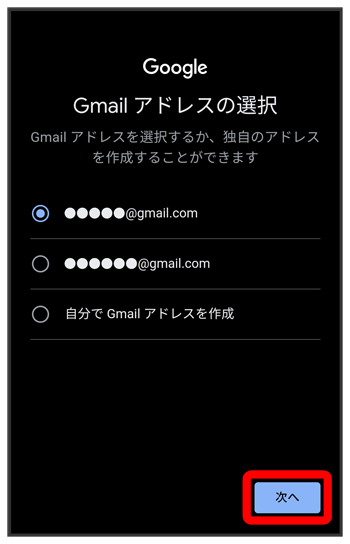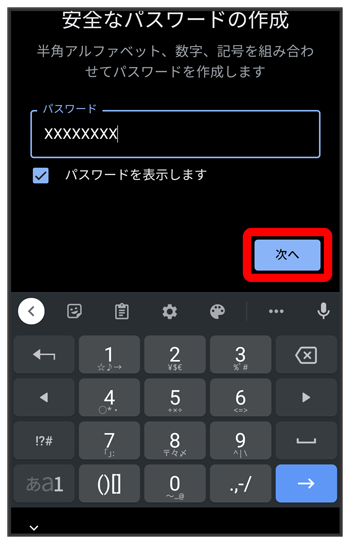 - お好みのユーザー名(メールアドレス)を作成する場合は、ユーザー名(メールアドレス)を入力と操作してください。