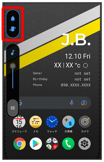 音量大/小ボタンを押す音量調節バーが表示されている間に画面左上に表示されるアイコンをタップマナーモードが解除されます。