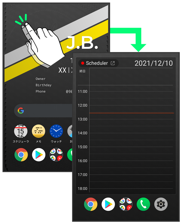 ホーム画面を左右にフリックすると、ホーム画面シートを切り替えることができます。