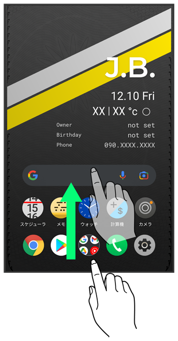 画面下部から上にドラッグ操作したいアプリをタップ- あらかじめ、操作したいアプリを起動しておいてください。