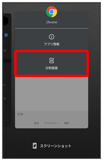 本機の表示画面を分割し、2つのアプリを表示、操作できます。
