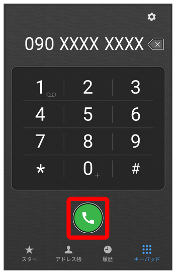 画面ロック解除画面で、画面を上にフリック電話番号を入力