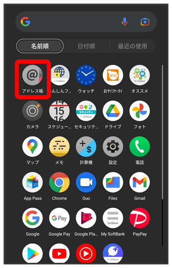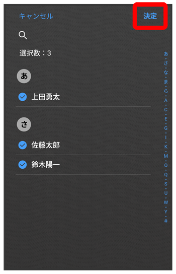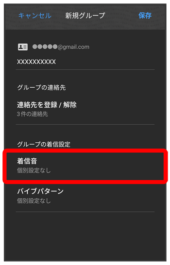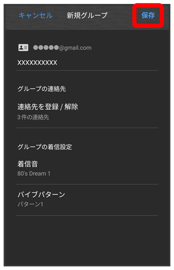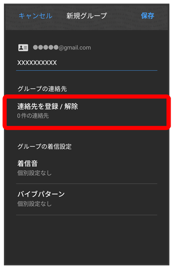 連絡先画面で連絡先を追加するグループを選択グループ名を変更する