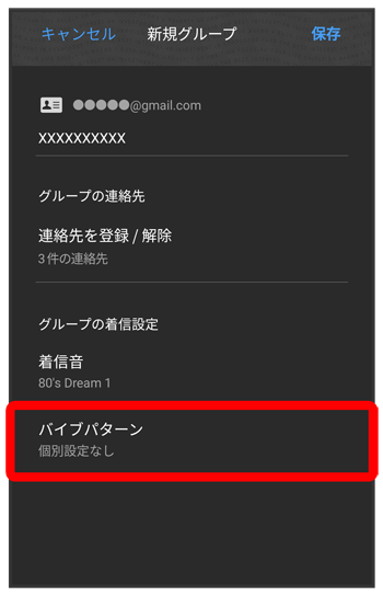 連絡先画面で名前を変更するグループを選択グループを削除する
