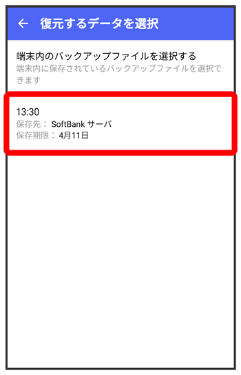 - バックアップしたデータが表示されないときは、+メッセージを最新版に更新してください。