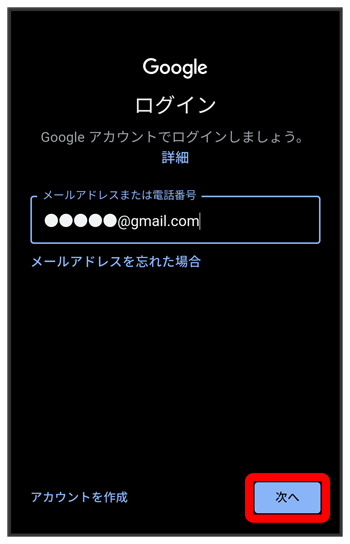 Google アカウントのログイン画面が表示されます。