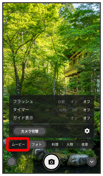 - 撮影画面を右にフリックしても動画に切り替えることができます。