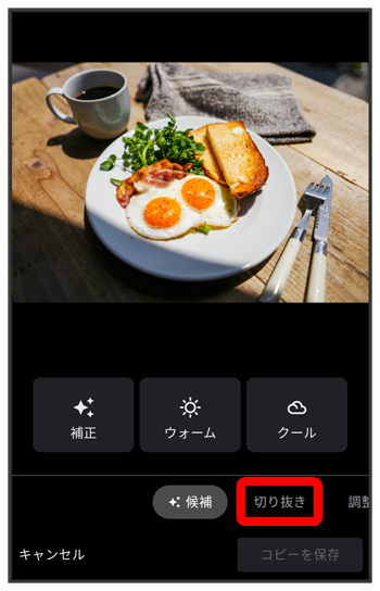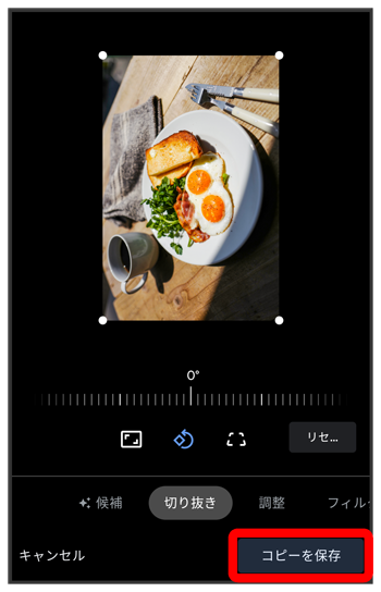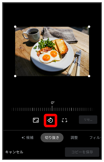 - 画面下の目盛を左右にドラッグして傾き調整を行うこともできます。