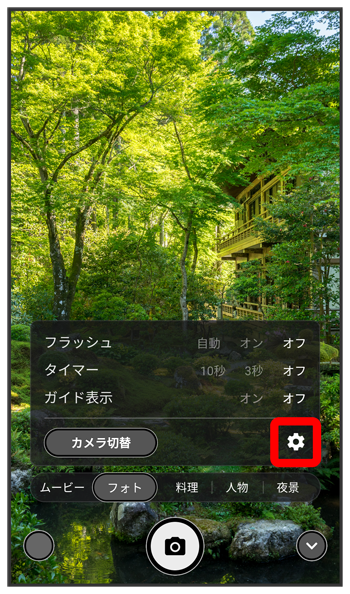 | HDR | 逆光などコントラストが強いシーンで、自動で白とびや黒つぶれを軽減して写真を撮るかどうかを設定します。 |