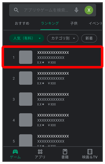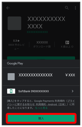 Google Play画面でアカウントのアイコンをタップアプリをタップアプリの購入について