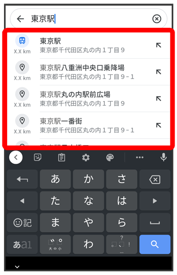 住所や都市、施設名などを入力選択候補から住所や都市、施設名などをタップ