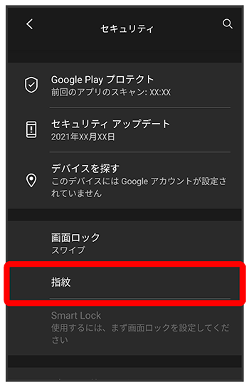 指紋設定画面で登録した指紋をタップ名前を入力指紋を削除する