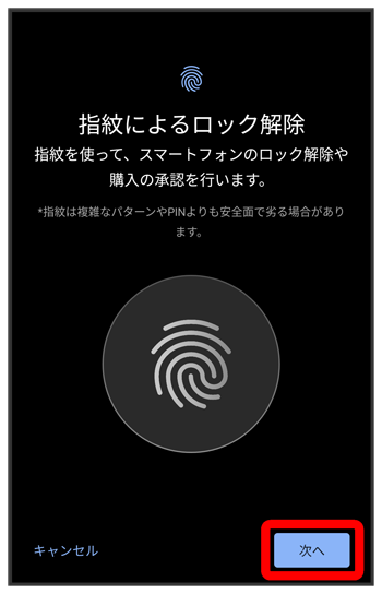 - すでに指紋が設定されている場合は、指紋設定画面が表示されます。