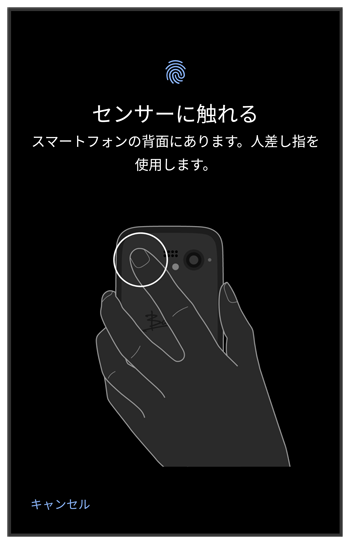 - 指紋センサーに指を触れたまま指紋の登録や認証を開始すると、起動できない場合があります。指を離し、再度操作してください。