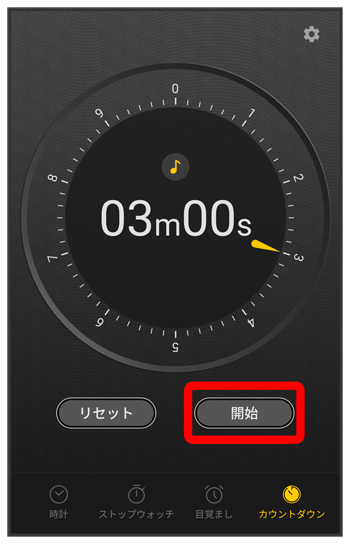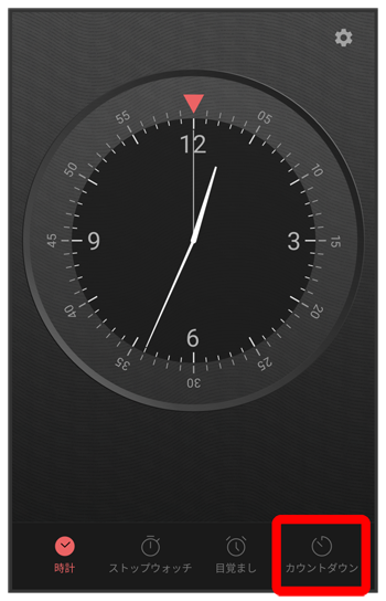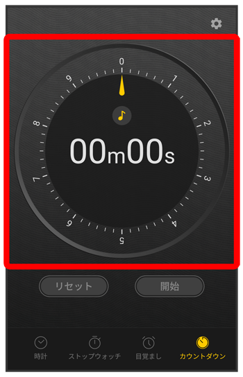 盤面をタップ/黄色の針をドラッグしてカウントダウンの時間を設定