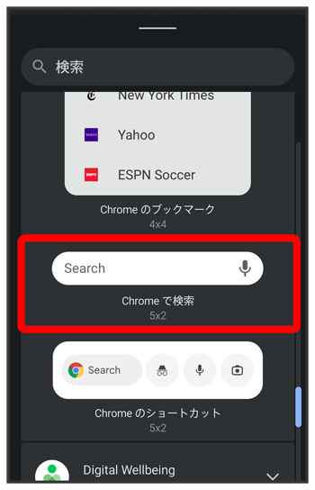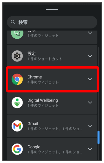 - 検索バーの入力欄をタップして検索文字列を入力すると、アプリやウィジェットを検索できます。