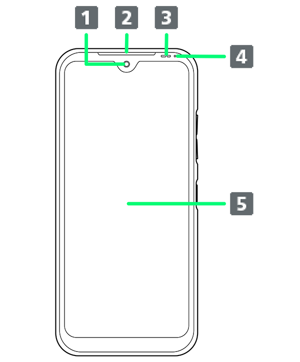 | 受話口/スピーカー | 相手の声や音楽、動画などの音声が聞こえます。 |