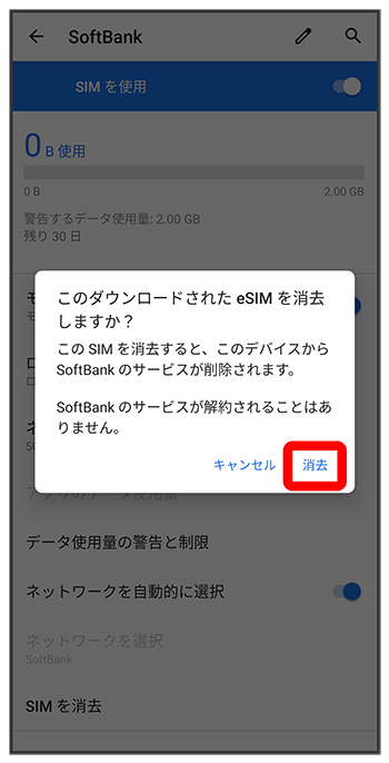 eSIMが消去されます。