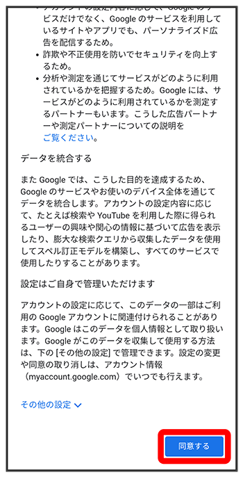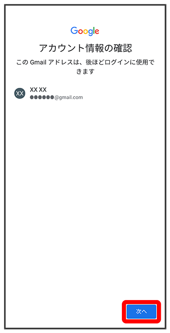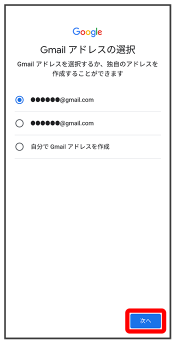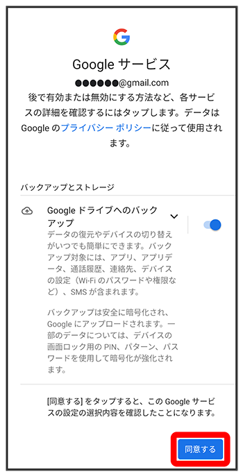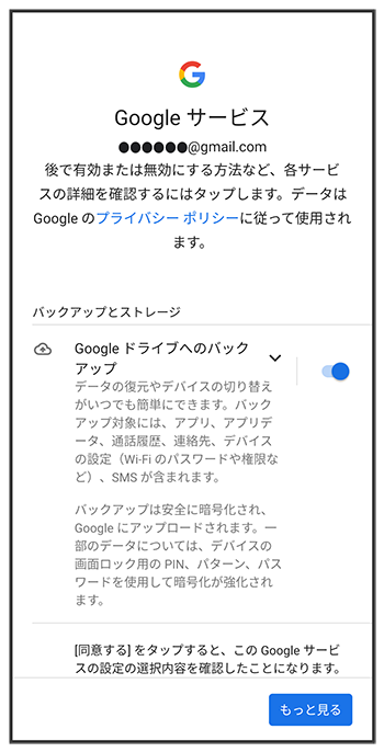 画面の指示に従って、Google サービスを設定