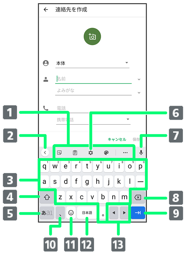 QWERTY画面の見かた