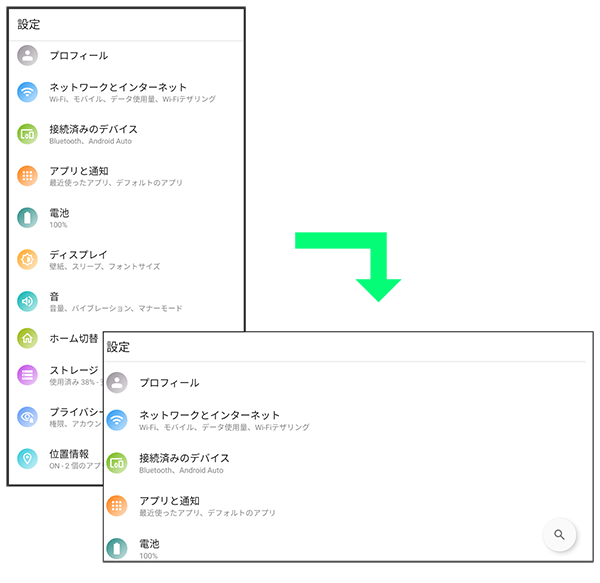 をタップします。を有効にしているときは本機を横向きに回転させると、自動的に表示画面も横表示に切り替わります。