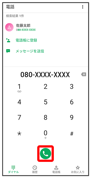 ダイヤルキーをタップして相手の電話番号を入力