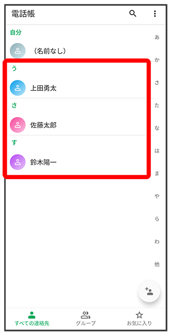 電話帳画面が表示されます。