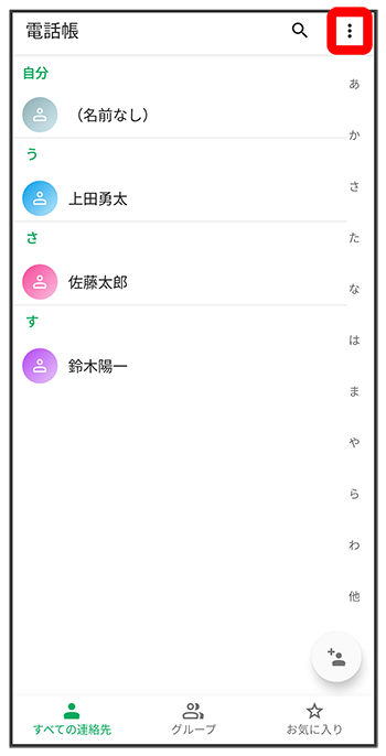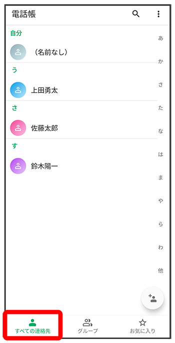 電話帳画面が表示されます。