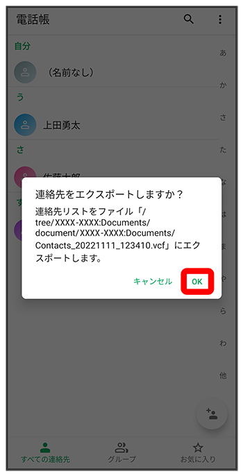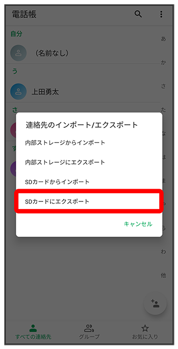 SDカードに電話帳データを保存する