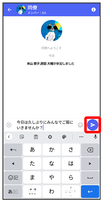 グループメッセージ内で、宛先を指定してメッセージを送信することができます。