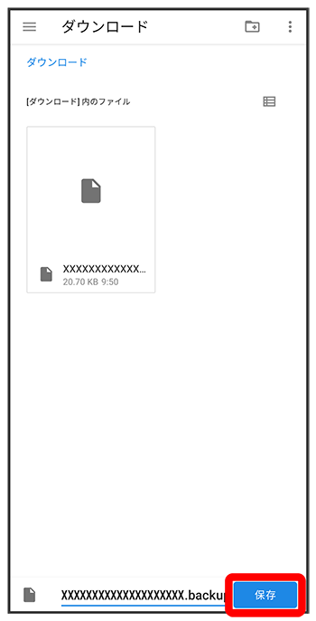 - バックアップしたデータのファイル名は「PlusMessage_」から始まり、拡張子は「.backup」になります。たとえば「PlusMessage_XXXXXXXX.backup」となります。
