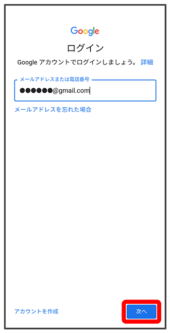 ユーザー名(メールアドレスまたは電話番号)を入力