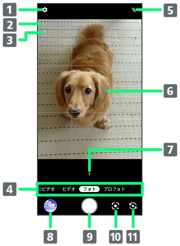 - 撮影画面をピンチイン(2本の指を閉じる)/ピンチアウト(2本の指を開く)してもズームを調整できます。