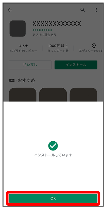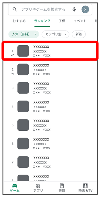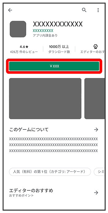Google Play画面でアカウントのアイコンをタップアプリをタップアプリの購入について