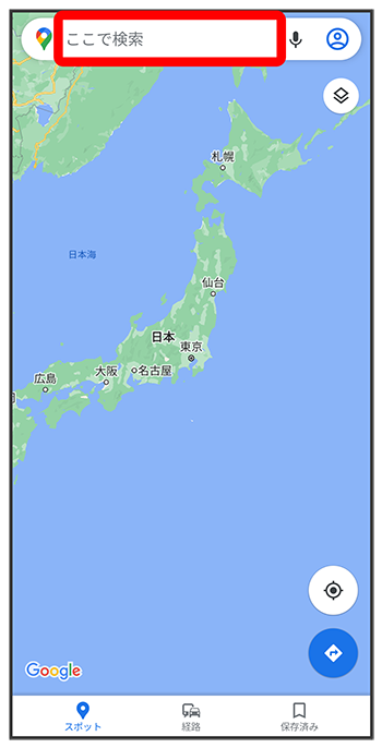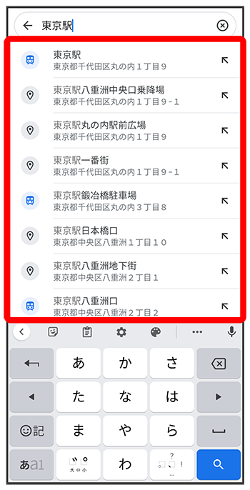 住所や都市、施設名などを入力選択候補から住所や都市、施設名などをタップ