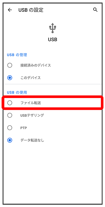 - メディアデバイス(MTP)で、パソコンとデータのやりとりができます。