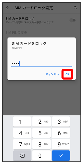PINコードを有効にすることで、USIMカードを本機に取り付けた状態/eSIMが有効な状態で電源を入れたとき、PINコードを入力する画面を表示するように設定できます。