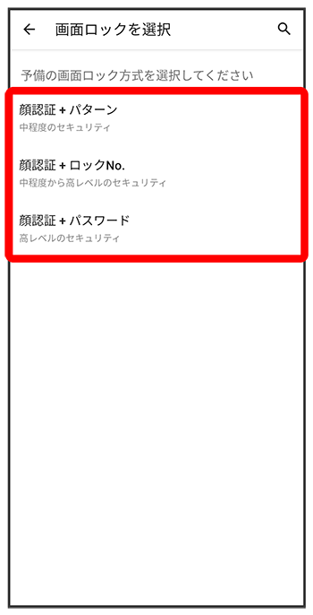 画面の指示に従って、スタート画面のセキュリティ解除用のパターン/ロックNo./パスワードを設定
