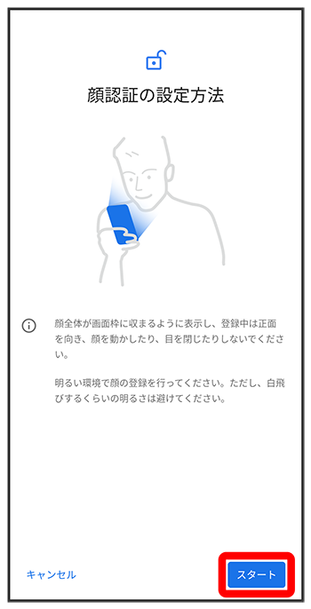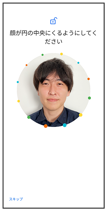 画面のガイドに顔を合わせて、画面の指示に従って顔データを登録