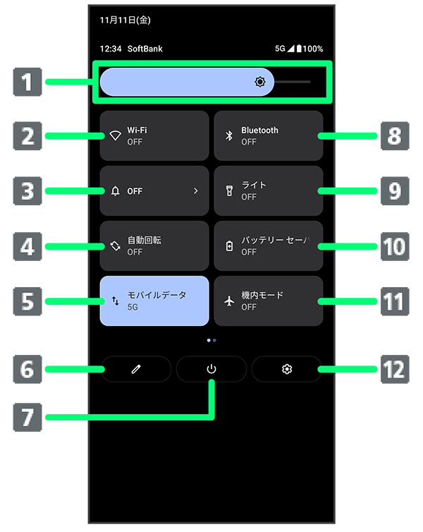 クイック設定パネルの見かた