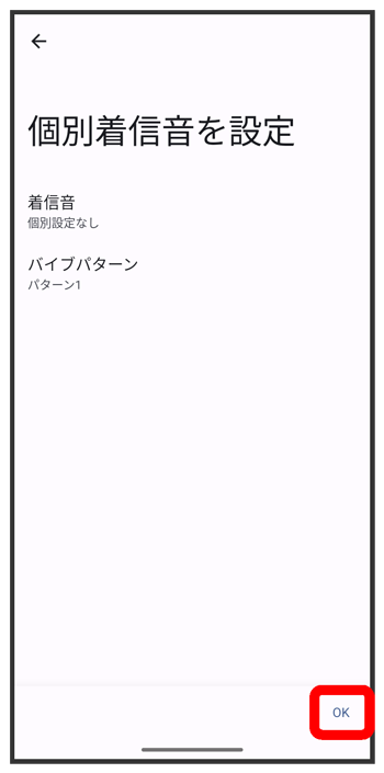 バイブパターンの設定が完了します。