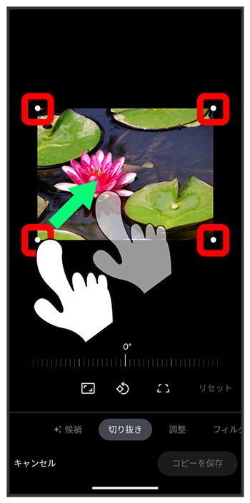 - 写真をドラッグして、切り出す枠内で位置を調整することもできます。