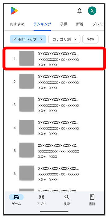 Google Play画面でアカウントのアイコンをタップアプリをタップ画面の指示に従って操作アプリの購入について