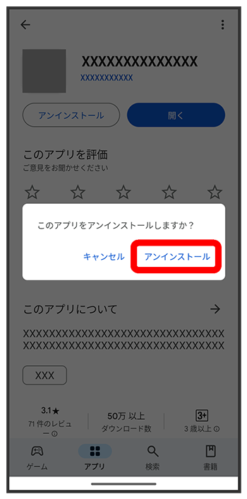 Google Playでインストールしたアプリは、削除(アンインストール)することもできます。