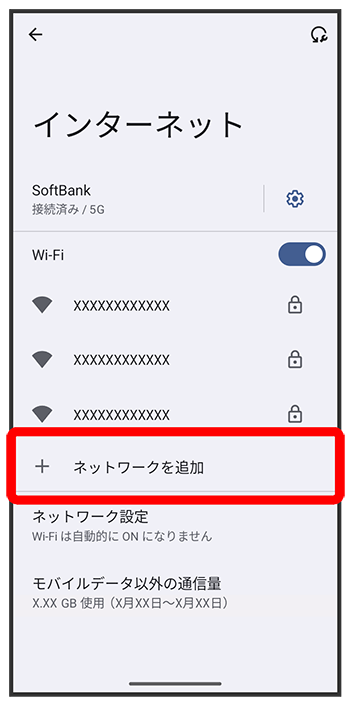- 非公開ネットワークのアクセスポイントのときは、をタップして、「非公開ネットワーク」をに変更してからをタップしてください。