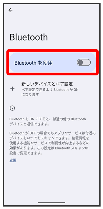 - Bluetooth®機能をOFFにするときは、をタップします(