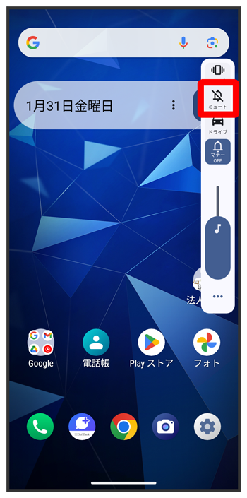 (ミュート)に変わり、マナーモード(ミュート)に設定されます。